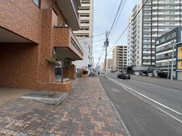 札幌市電通り沿いの1階路面テナント。テナント裏倉庫付き。駐車場あり。事務所や店舗におすすめ。